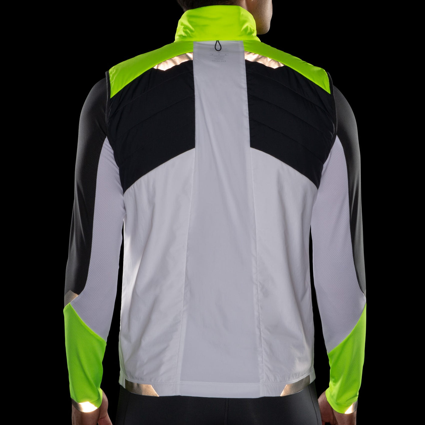 The Brooks Men's Run Visible Insulated Vest is your solution for core warmth and high-visibility safety during dark, cold runs, available at Grivet Outdoors. This vest is engineered with custom Fluoro Flash color that meets high fluorescent standards, paired with 3M Scotchlite reflectivity in critical motion zones to ensure you are seen by drivers. The GO2 Warm™ thermal fabric and 80 grams of THERMOLITE® insulation trap heat efficiently without adding bulk, making it an essential, high-performance layering piece.