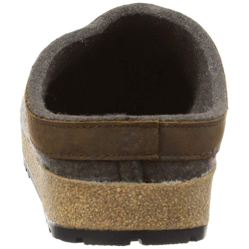 The GZL Classic Grizzly Clog from Haflinger is a beautiful and thoughtfully designed casual shoe made for everyday comfort. It has many features to promote the health and proper alignment of your feet. This clog has a contoured heel seat, a wool-felt inside lining for moisture absorption, a cork-latex footbed with arch support, a rocker heel, and a roomy toe box with a toe bar. The outsole is non-skid for greater stability indoors and out. Not to be forgotten is the 100-percent wool felt upper which keeps you feet at an ideal temperature in warm or cold weather.