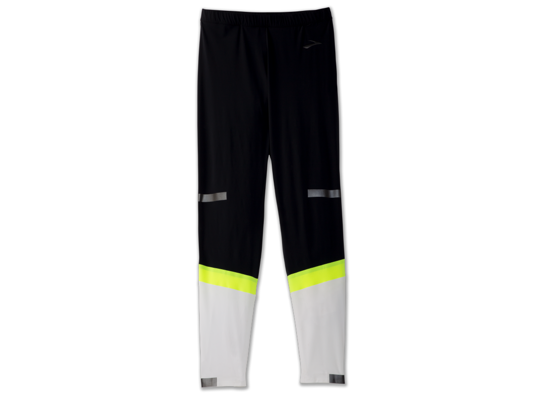 The Brooks Men's Carbonite Tight is engineered to provide warmth and highly visible safety for running in cold, dark conditions, available at Grivet Outdoors. These tights utilize high-contrast fluorescence and 3M Scotchlite Carbon Black Stretch reflectivity strategically placed in critical motion zones, helping drivers recognize you as a runner in motion. The compression fabric offers a supportive, comfortable fit that balances warmth with breathability, ensuring you stay focused and dry during your toughest winter workouts.