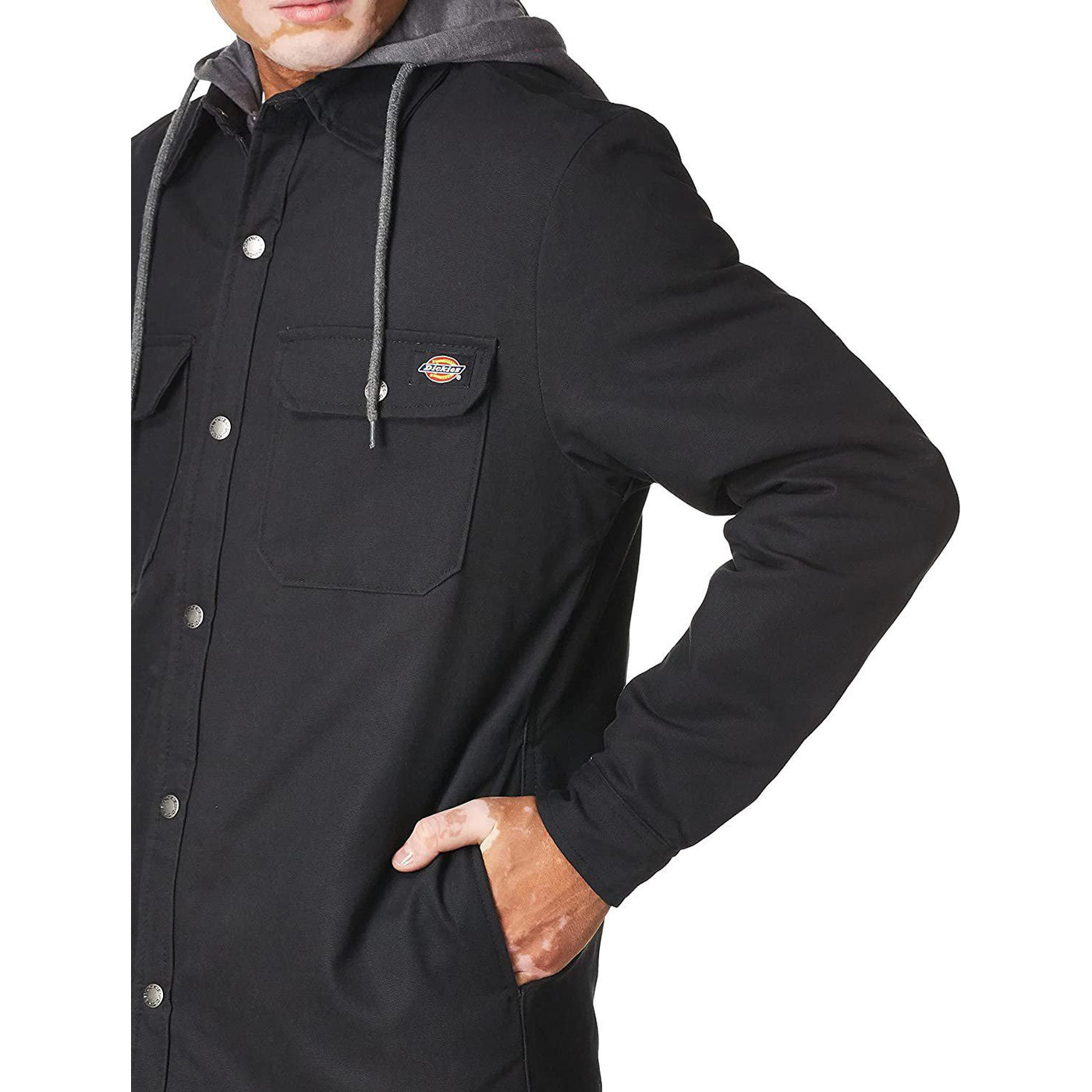 Dickies’ Fleece Hooded Duck Shirt Jacket with Hydroshield is the essential layering piece when it’s too cold for a shirt and too warm for a coat. The Hydroshield innovation makes this jacket completely water repellent, while the jersey lining adds a shield of warmth. The durability of the fabrication adds longevity and value to the jacket, so you know it will go the distance. Plus, Dickies partnership with the Better Cotton Initiative ensures that the cotton used to construct this shirt jacket was sustainably sourced. Hand warming pockets and convenient chest pockets provide high utility in this low maintenance jacket.